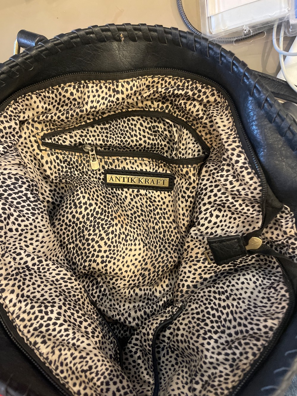 Home / Purses/Wallets / antik kraft black tote purse animal print lining
