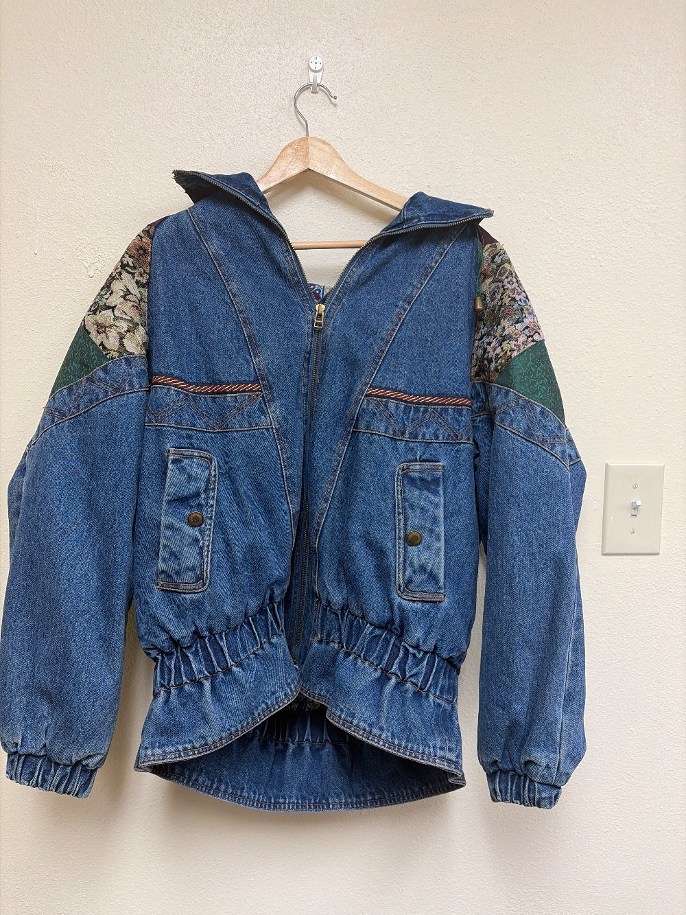 Home / Women’s Outerwear / size medium current seen vintage 80’s bomber jacket with floral tapestry accents